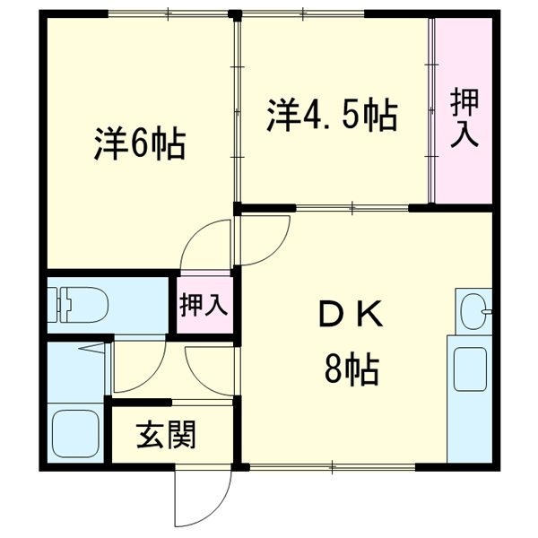 2DK(40.57m²)└ 2階:DK8帖 洋室4.5帖 洋室6帖