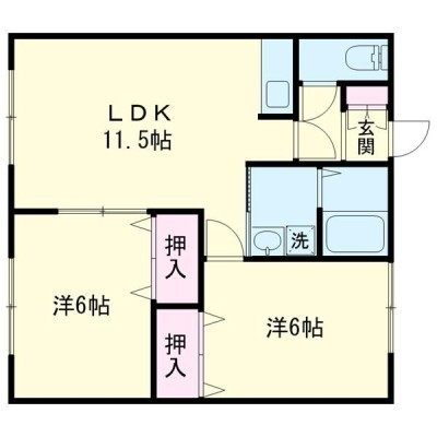 2LDK(51.84m²)└ LDK11.5×洋6×洋6