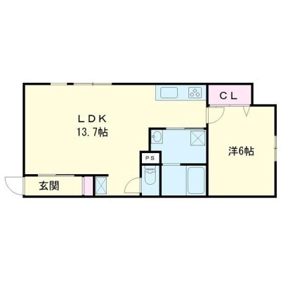1LDK(44.71m²)└ LDK13.7×洋6