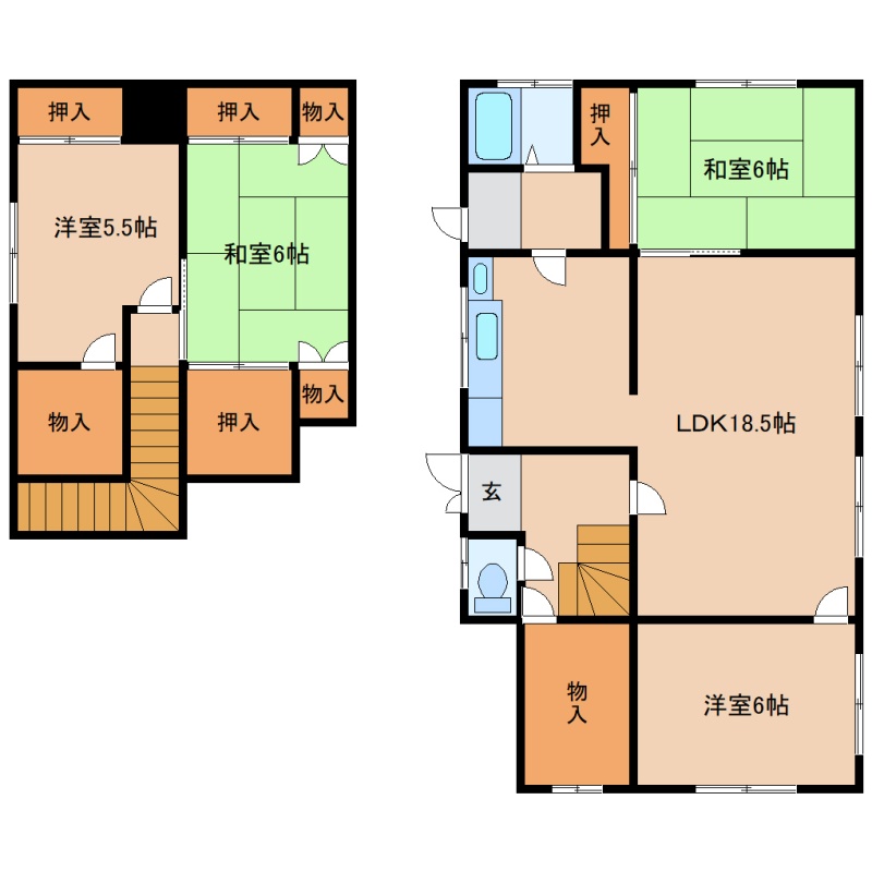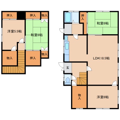 4LDK(95.5m²)└ LDK18.5帖 洋室6帖 洋室5.5帖 和室6帖 和室6帖