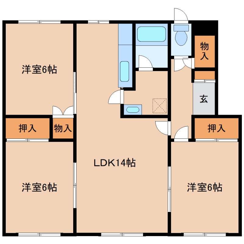 3LDK(72m²)└ LDK14帖 洋室6帖 洋室6帖