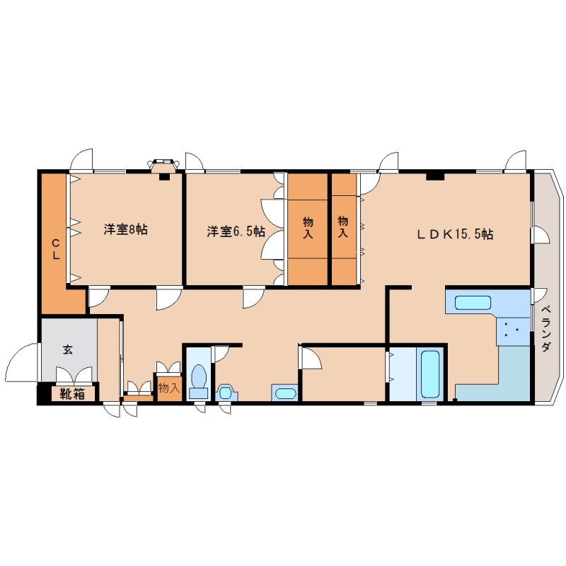 2LDK(98.17m²)└ LDK15.5帖 洋室8帖 洋室6.5帖