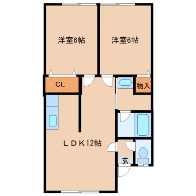 2LDK(49.27m²)└ LDK12帖 洋室6帖 洋室6帖