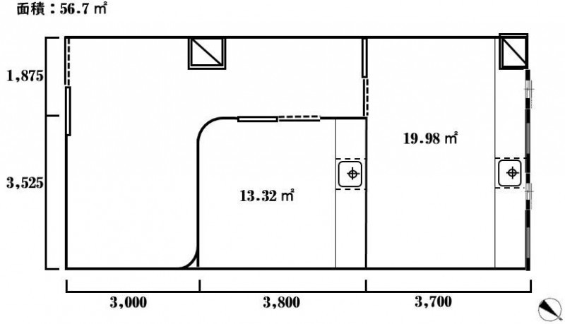 | 専有面積 | 56.7m² (17.15坪) |