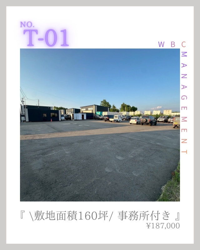 ここに注目!札幌市白石区東米里に、事業の可能性を広げる事務所付きアスファルト舗装の貸地が登場しました! 前面敷地は舗装済広々とした160坪を有します。中古車販売、レンタカー事業に最適な土地になります。 西濃運輸札幌支店まで約400mと物流拠点に近く、大型車もスムーズに進入できる立地は、運送業や製造業に大変便利です。 無料駐車場30台分を完備しており、車両の多い業種にも対応できます。 200Vまで入っている、電気設備や給排水設備も整っており、自動車修理工場はもちろん、事務所やアミューズメント施設など、幅広いビジネスにご活用いただけます。 初期費用を抑えたい方に嬉しい礼金ゼロ物件!管理費もかかりません。 JR北海道バス「白石営業所」停まで徒歩16分。お車でのアクセスも良好です。 この機会に、ぜひ現地をご覧ください。 皆様からのお問い合わせをお待ちしております!