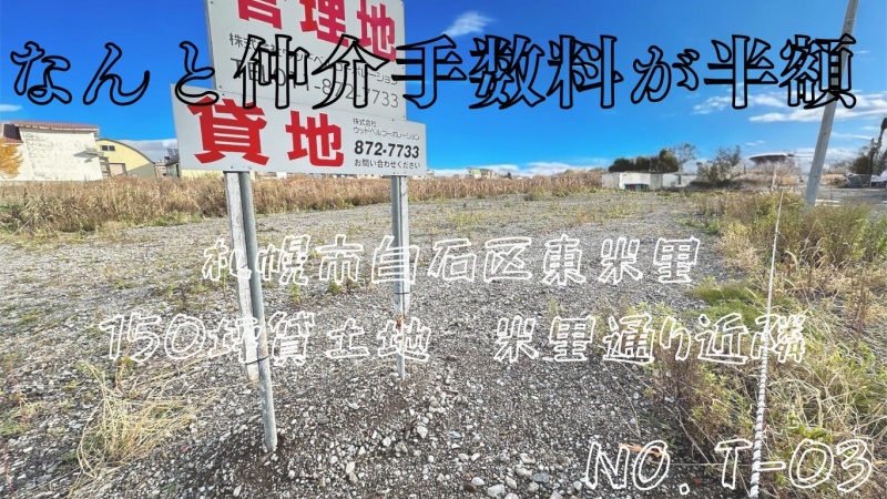 ここに注目!12月限定仲介手数料がなんと半額!! 他社ではなかなかしてくれないお客様の費用の軽減を全力でサポート致します。 札幌市白石区東米里に、広々約150坪の貸土地が登場! 一つの土地を二分割にしているため、まとめて借りたい方は300坪で借りることも可能!! まとめて借りた場合賃料は税込み165000円!!! 分割で借りるより、お得!!! オーナー様の方で箱車などの物置の在庫もあるみたいなので、手間がかからず色々便利!!!(別途費用が掛かります) 上記の詳細はご連絡ください。 レンタカー事業、資材置き場、大型車の駐車場など、幅広い用途でご活用いただけます。米里通りから入ってすぐの好立地で、大型車の進入もスムーズ。私道は砕石敷きで、泥汚れの心配も軽減されます。 JR北海道バス「白石営業所」停まで徒歩16分。周辺にはコンビニ(徒歩4分)や郵便局(徒歩6分)があり、利便性も良好です。 「仲介手数料は半額」と、初期費用を抑えたい方に魅力的な条件が揃っています。24時間利用可能で、あなたのビジネスを力強くサポートします。 この機会にぜひご検討ください。詳細はお気軽にお問い合わせください!