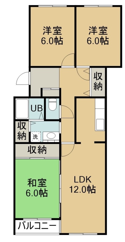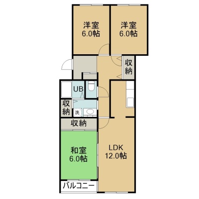 3LDK(67.63m²)└ 2階:LDK12帖 洋室6帖 洋室6帖 和室6帖