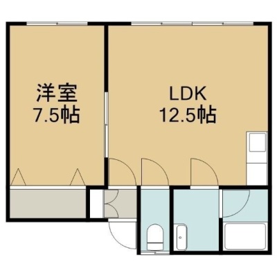 1LDK(43m²)└ 2階:LDK12.5帖 洋室7.5帖
