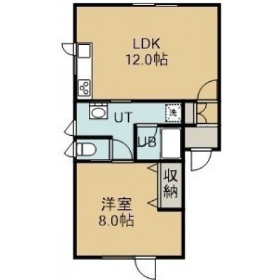 1LDK(43.72m²)└ 1階:LDK12帖 洋室8帖