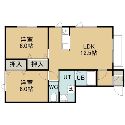 2LDK(54.8m²)└ 2階:LDK12.5帖 洋室6帖 洋室6帖