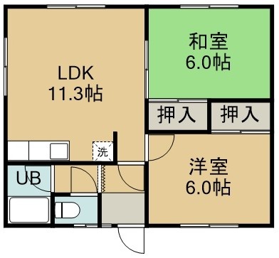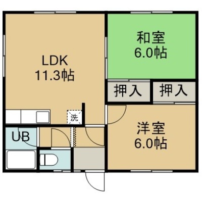 2LDK(49.27m²)└ 2階:LDK11.3帖 洋室6帖 和室6帖