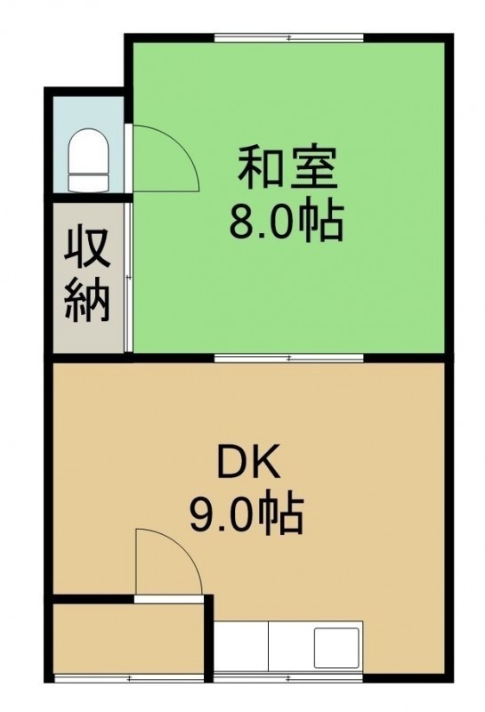 1DK(32.1m²)└ 2階:DK9帖 和室8帖