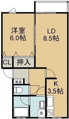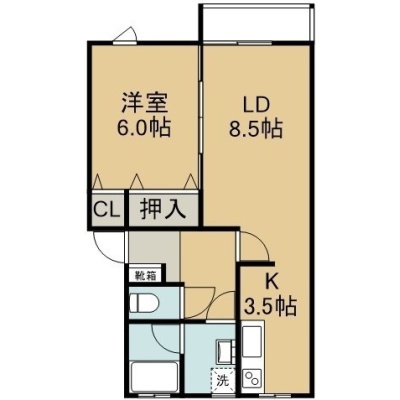 1LDK(41.58m²)└ 2階:LD7.5帖 K3帖 洋室6帖