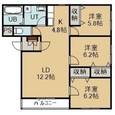3LDK(71.6m²)└ 2階:LDK17帖 洋室6.2帖 洋室6.2帖 洋室5.8帖