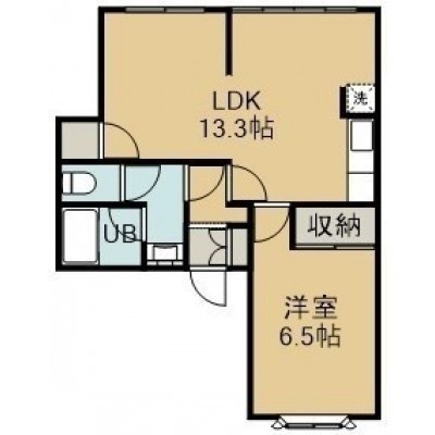 1LDK(42.8m²)└ 2階:LDK13.3帖 洋室6.5帖