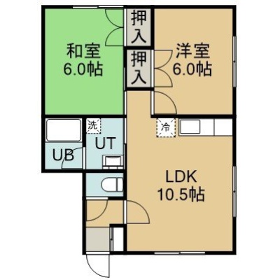2LDK(48.35m²)└ 2階:LDK10.5帖 洋室6帖 和室6帖