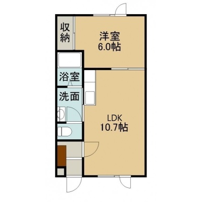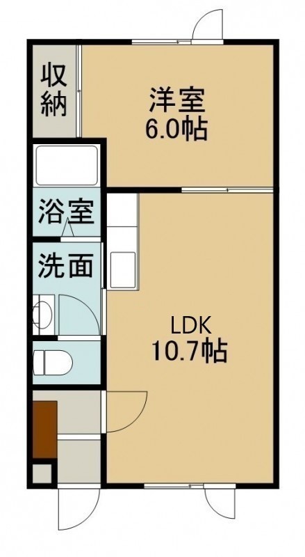 1LDK(38.34m²)└ 2階:LDK10.7帖 洋室6帖