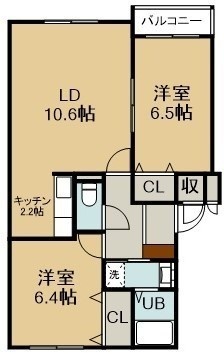 2LDK(55.43m²)└ 3階:LDK12.8帖 洋室6.5帖 洋室6.4帖