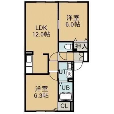 2LDK(53.79m²)└ 1階:LDK12帖 洋室6.3帖 洋室6帖