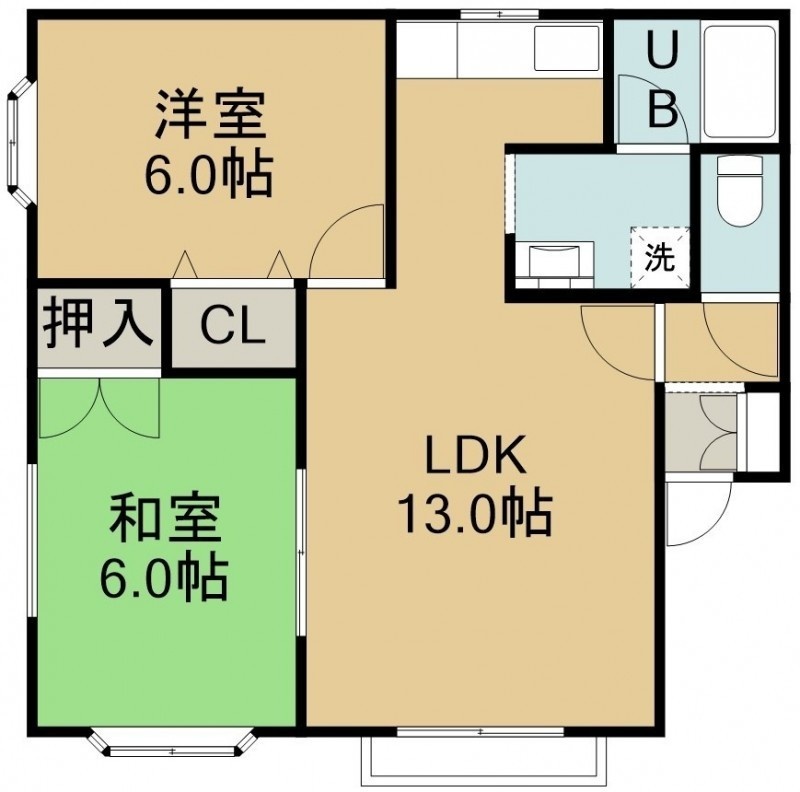 2LDK(52.47m²)└ 2階:LDK13帖 洋室6帖 和室6帖