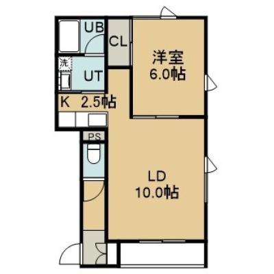 1LDK(42.93m²)└ 2階:LD10帖 K2.5帖 洋室6帖