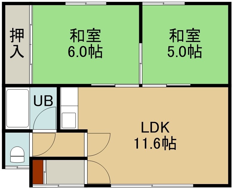 2LDK(47.3m²)└ 1階:LDK11.6帖 和室6帖 和室5帖