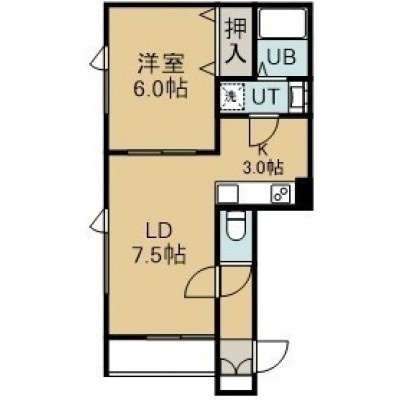 1LDK(41m²)└ 2階:LD7.5帖 K3帖 洋室6帖