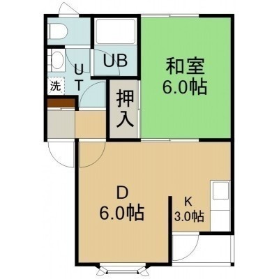 1DK(36.36m²)└ 2階:D6帖 K3帖 和室6帖