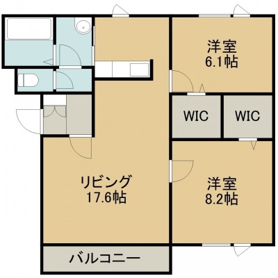 2LDK(73.3m²)└ 1階:LDK17.6帖 洋室8.2帖 洋室6.1帖