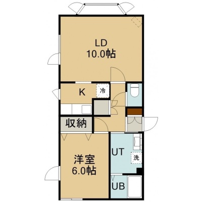 1LDK(46.93m²)└ 1階:LD10帖 K2.5帖 洋室6帖