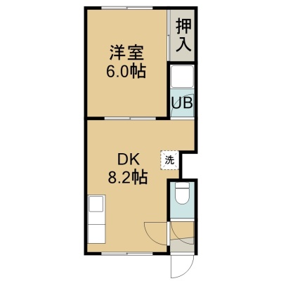 1DK(29.3m²)└ 2階:DK8.2帖 洋室6帖