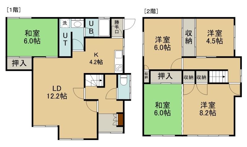 5LDK(110.55m²)└ 1階:LD12.2帖 K4.2帖 和室6帖 / 2階:洋室8.2帖 洋室6帖 和室6帖 洋室4.5帖