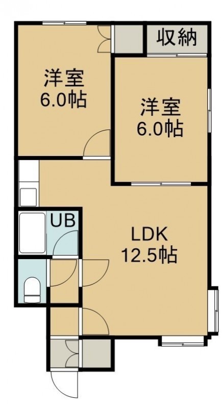 2LDK(50m²)└ 2階:LDK12.5帖 洋室6帖 洋室6帖