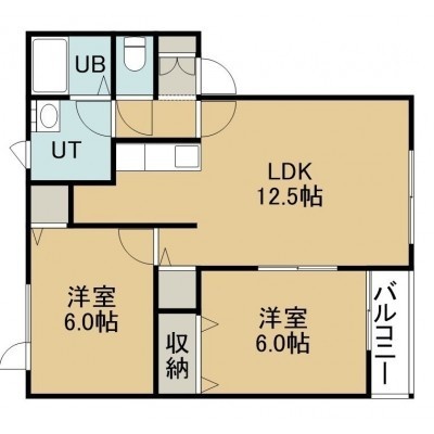 2LDK(55.48m²)└ 2階:LDK12.5帖 洋室6帖 洋室6帖