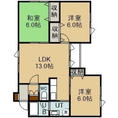 3LDK(63.18m²)└ 2階:LDK13帖 洋室6帖 洋室6帖 和室6帖