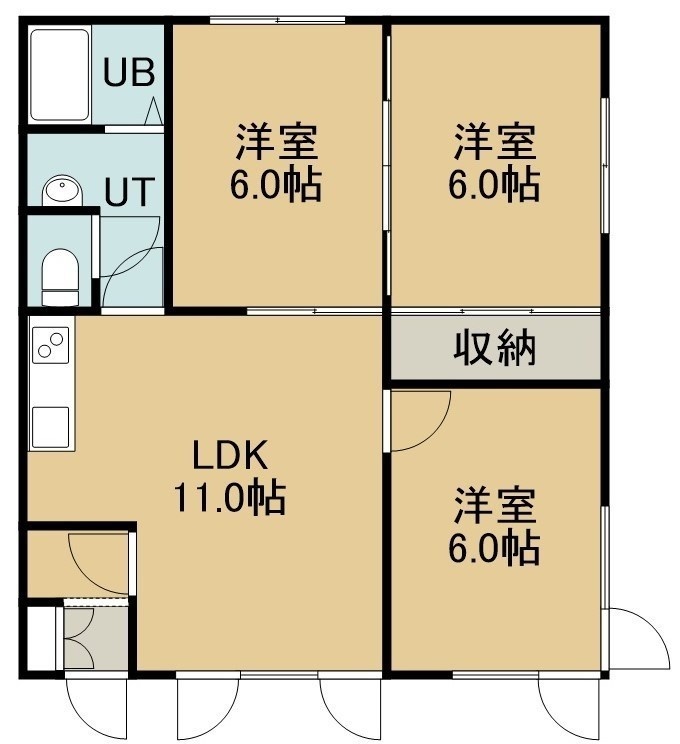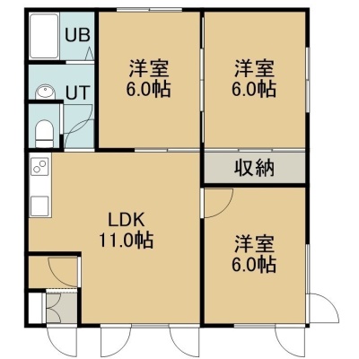 3LDK(59.62m²)└ 2階:LDK11帖 洋室6帖 洋室6帖 洋室6帖