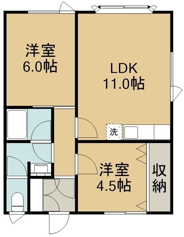 2LDK(49.17m²)└ 2階:LDK11帖 洋室6帖 洋室4.5帖
