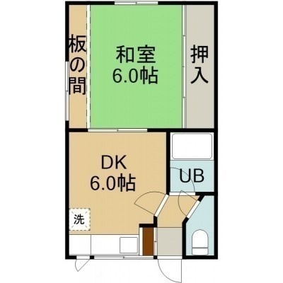 1DK(27.93m²)└ 1階:DK6帖 和室6帖