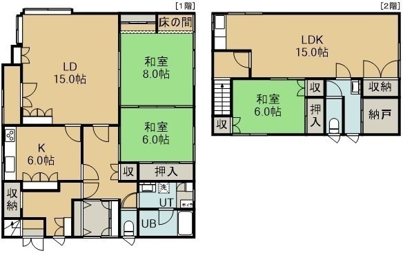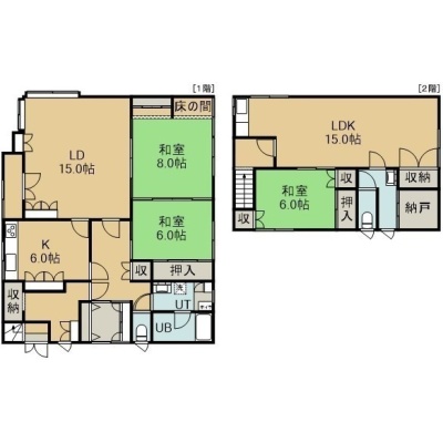 二世帯型(254.21m²)└ 2階:L15帖 DK6帖 和室8帖 和室6帖 / 3階:LDK15帖 和室6帖