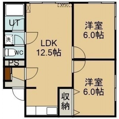 2LDK(52.47m²)└ 1階:LDK12.5帖 洋室6帖 洋室6帖