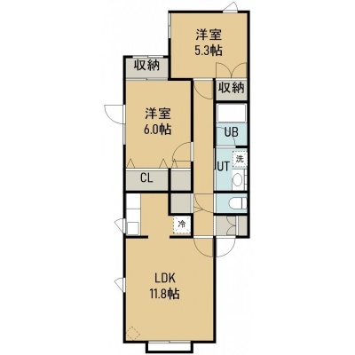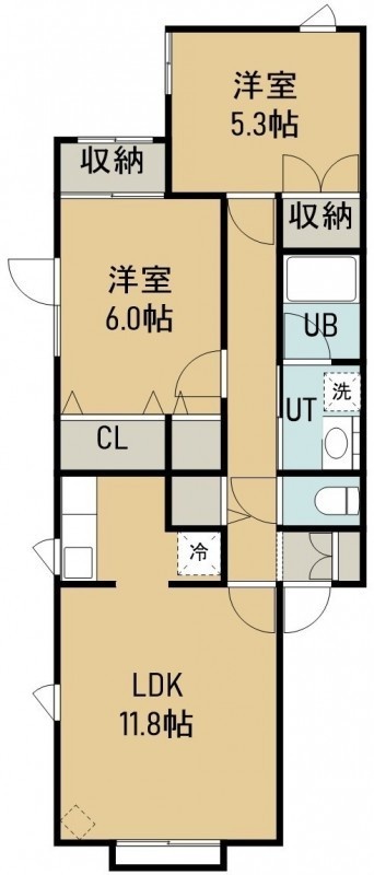 2LDK(56.2m²)└ 2階:LDK11.8帖 洋室6帖 洋室5.3帖