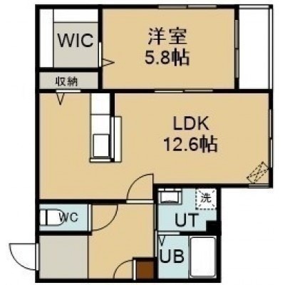 1LDK(45.36m²)└ 2階:LDK12.6帖 洋室5.8帖