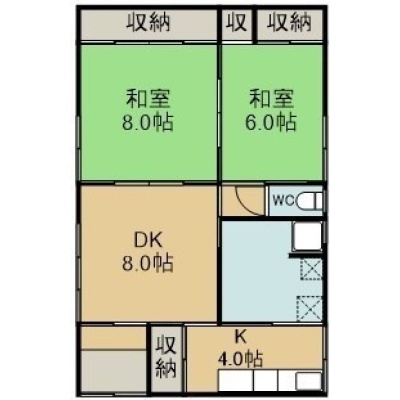 2LDK(59.5m²)└ 1階:DK8帖 K4帖 和室8帖 和室6帖