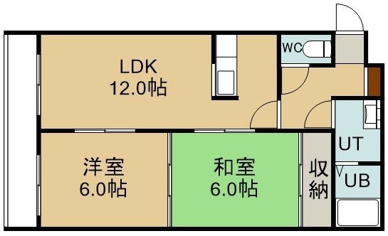 2LDK(52.58m²)└ 2階:LDK12帖 洋室6帖 和室6帖