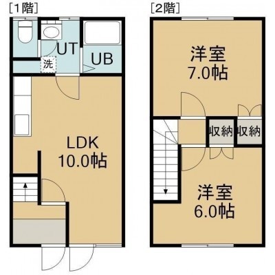 2LDK(52.89m²)└ 1階:LDK10帖 / 2階:洋室7帖 洋室6帖