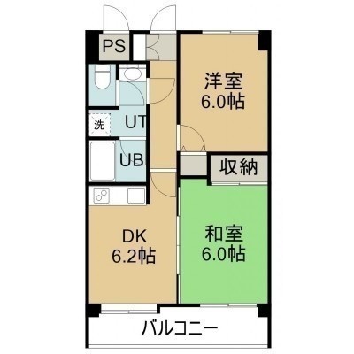 2DK(43.98m²)└ 11階:LDK6.2帖 和室6帖 洋室6帖
