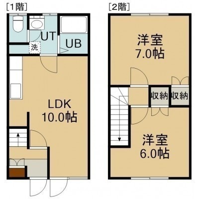 2LDK(52.89m²)└ 1階:LDK10帖 / 2階:洋室7帖 洋室5.5帖