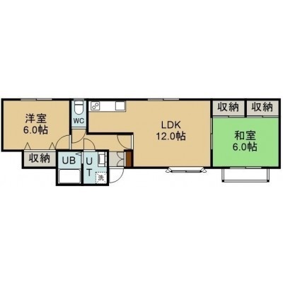 2LDK(53.39m²)└ 1階:LDK12帖 洋室6帖 和室6帖