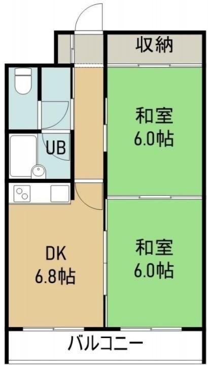 2DK(44.5m²)└ 7階:DK6.8帖 和室6帖 和室6帖