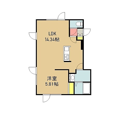 1LDK(43.43m²)└ 1階:LDK14.34帖 洋室5.81帖